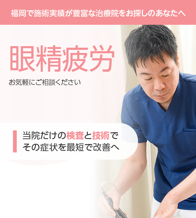 病院やほかの治療院で改善しなかったとしても諦める必要はありません。眼精疲労の豊富な施術実績を誇る当院にお任せください。